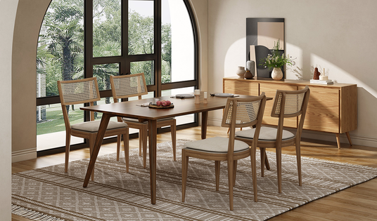 Explore our dining furniture collection, celebrated for its impeccable quality, balanced weight, and elegant design. Each piece is crafted to enhance both style and functionality. Our unique extension tables make it easy to accommodate more guests, while our comfortable dining chairs and best-selling round tables are perfect for small spaces. Additionally, our versatile sideboards are available in a variety of styles, including modern rustic, mid-century, and industrial-inspired designs.