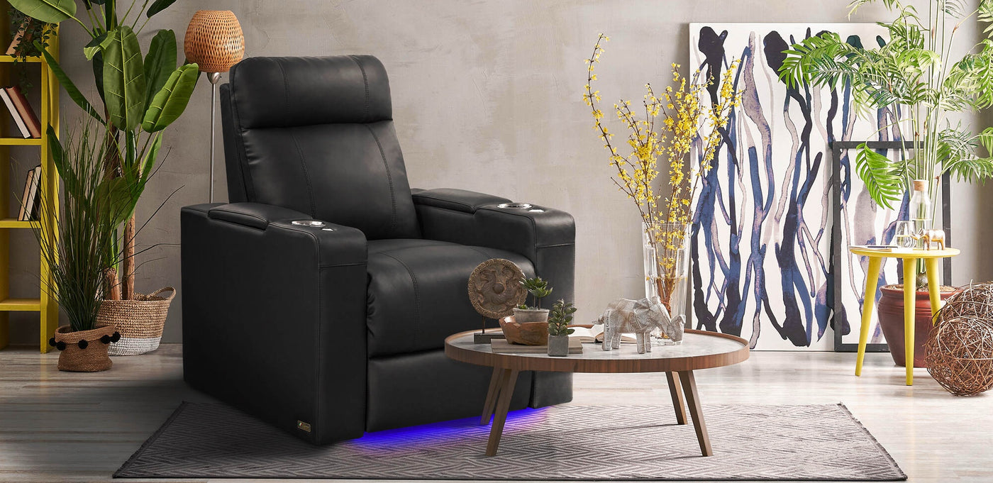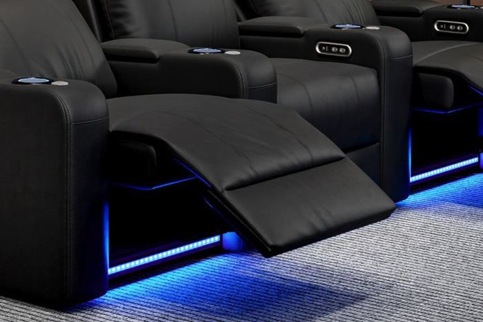 Create a cinematic atmosphere with ambient LED lighting. Subtle illumination under the base and cupholders adds a modern glow while helping you navigate your theater room without disrupting the mood.