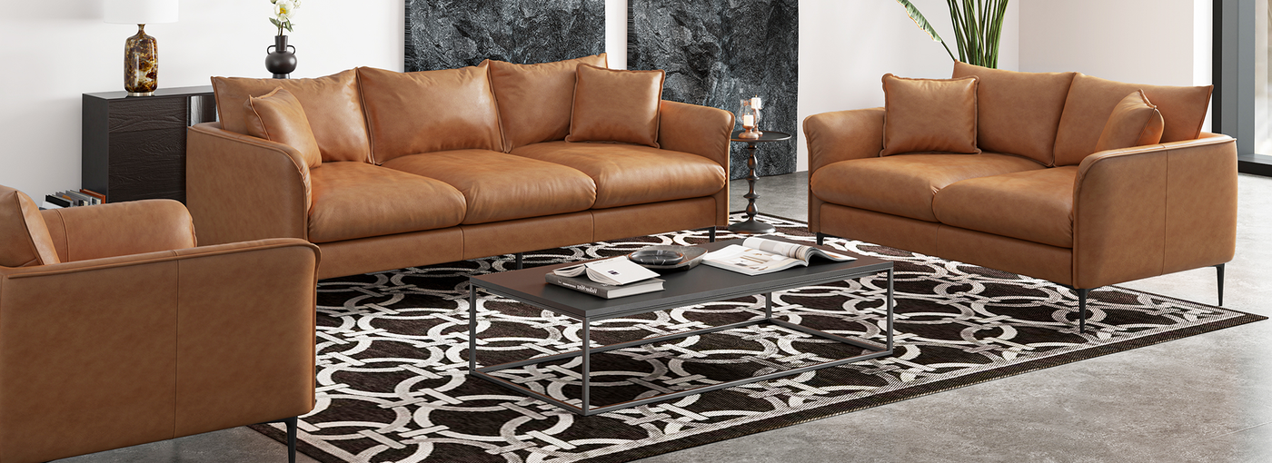 At the heart of our living room collection is luxurious Italian leather. Each piece is upholstered in supple Italian-crafted leather made from carefully selected Northern European cowhide, offering a naturally smooth handfeel, rich depth of color, and a refined, matte sheen that only gets better with time.