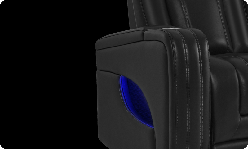 Both armrests and the center console feature LED-illuminated cup holders, making it easy to place or retrieve drinks in the dark while adding ambient light to your theater setup.