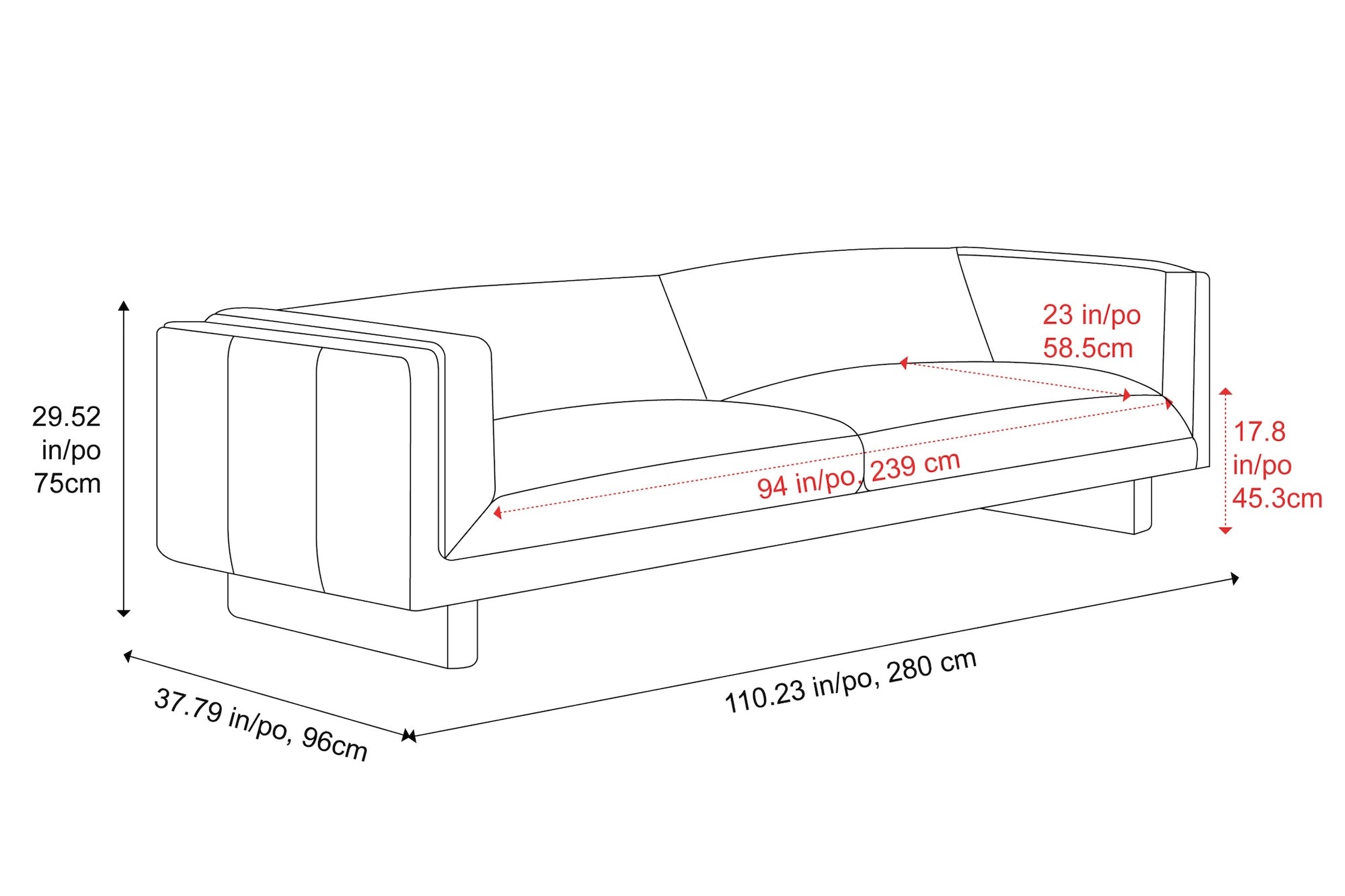 Width: 279.98 cm, Height: 74.98 cm, Depth: 95.99 cm