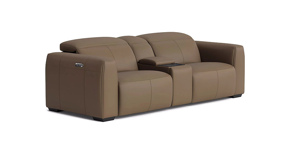 Indulge in unmatched comfort with the Carmen Leather Modular Electric Reclining Loveseat with Console Lounge. Its gracefully curving armrests and supportive backrests promise opulent relaxation, complemented by electric headrests and footrests for personalized comfort at your fingertips. Wrapped in premium-soft Italian Nappa 11000 Top Grain Leather upholstery, it bestows a lavish touch upon your living space. Elevate your lounging experience with Carmen, where the fusion of luxury and functionality redefines comfort. Opt for additional features such as storage consoles, wireless charging plates, and retractable drink holders to enhance your overall comfort.