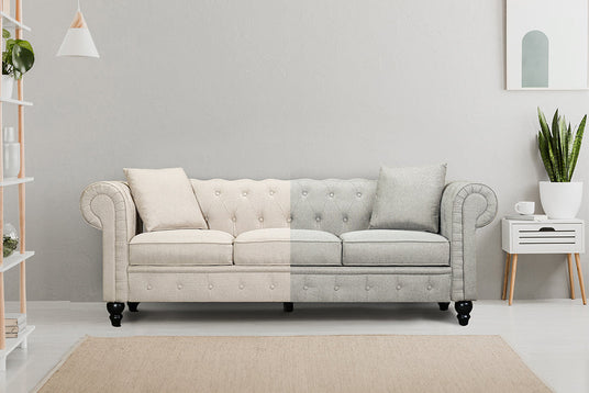 Be impressed by the timeless allure of the Cerna Chesterfield lounge. Its breath-taking upholstery and plush high-density foam cushioning combine to create a perfect blend of classic style and modern comfort. With ample room for three individuals, the Cerna Chesterfield provides a generous seating area where comfort reigns supreme. Elevate the style of any room with the Cerna Chesterfield, an exquisite piece that effortlessly blends classic design with contemporary comfort.