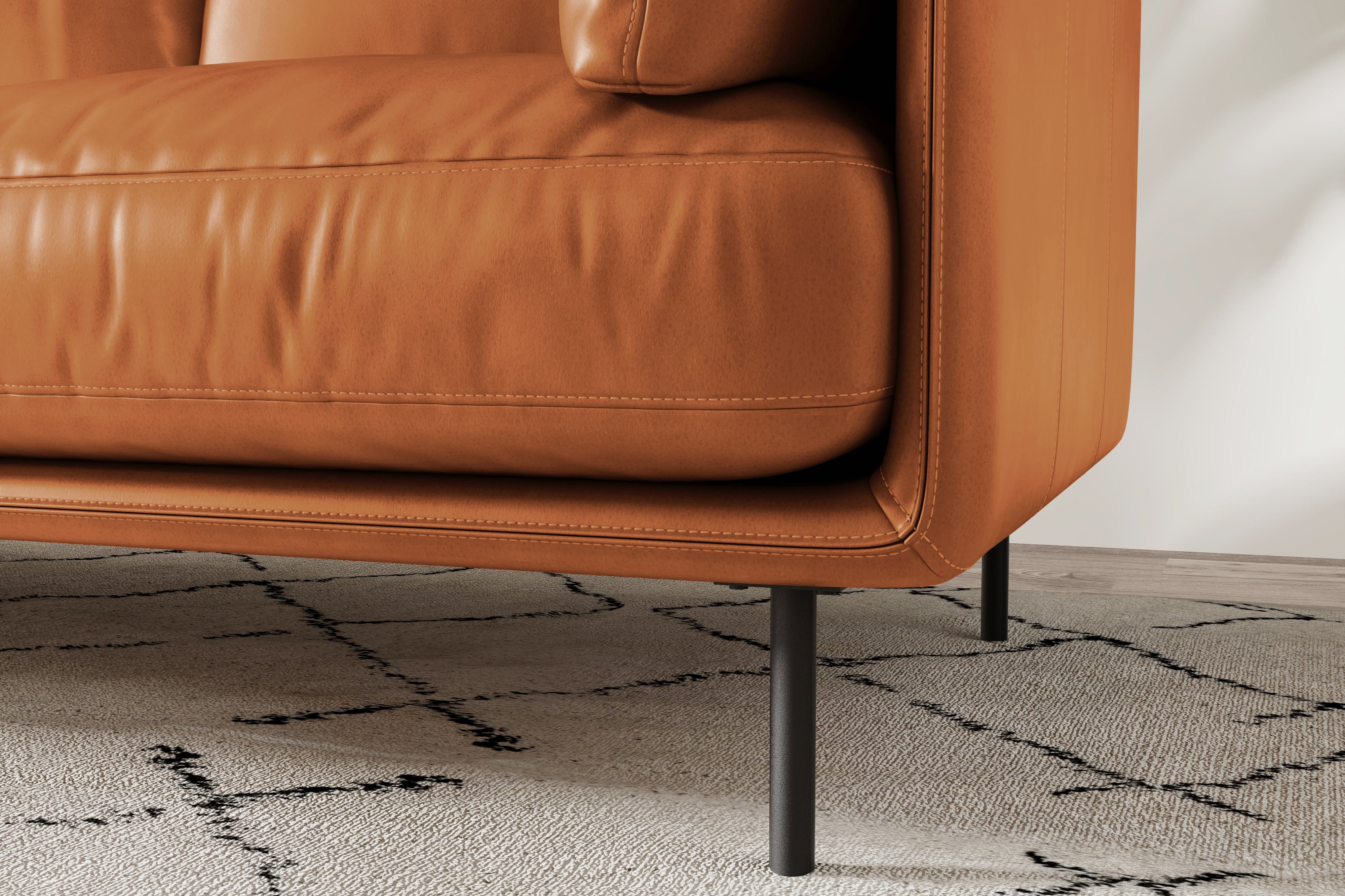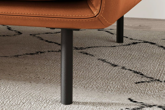 Elevate your lounging experience with the generously sized Chloe lounge, where the luxurious leather envelops you in opulence. Its slim frame, supported by iron legs, gives it a modern touch while maintaining a sense of spaciousness. The artful blend of top-stitching and French seams on the arms showcases the meticulous craftsmanship that defines Chloe. Sink into high-resiliency foam seat cushions wrapped in a down-proof ticking, while the fiber back cushions offer unparalleled support. Two bolster pillows with fiber fill enhance the comfort experience. Elevate your space with the matte black iron legs that add a touch of sophistication. Crafted with responsibly managed kiln-dried wood, the Chloe lounge is environmentally sound and socially beneficial.