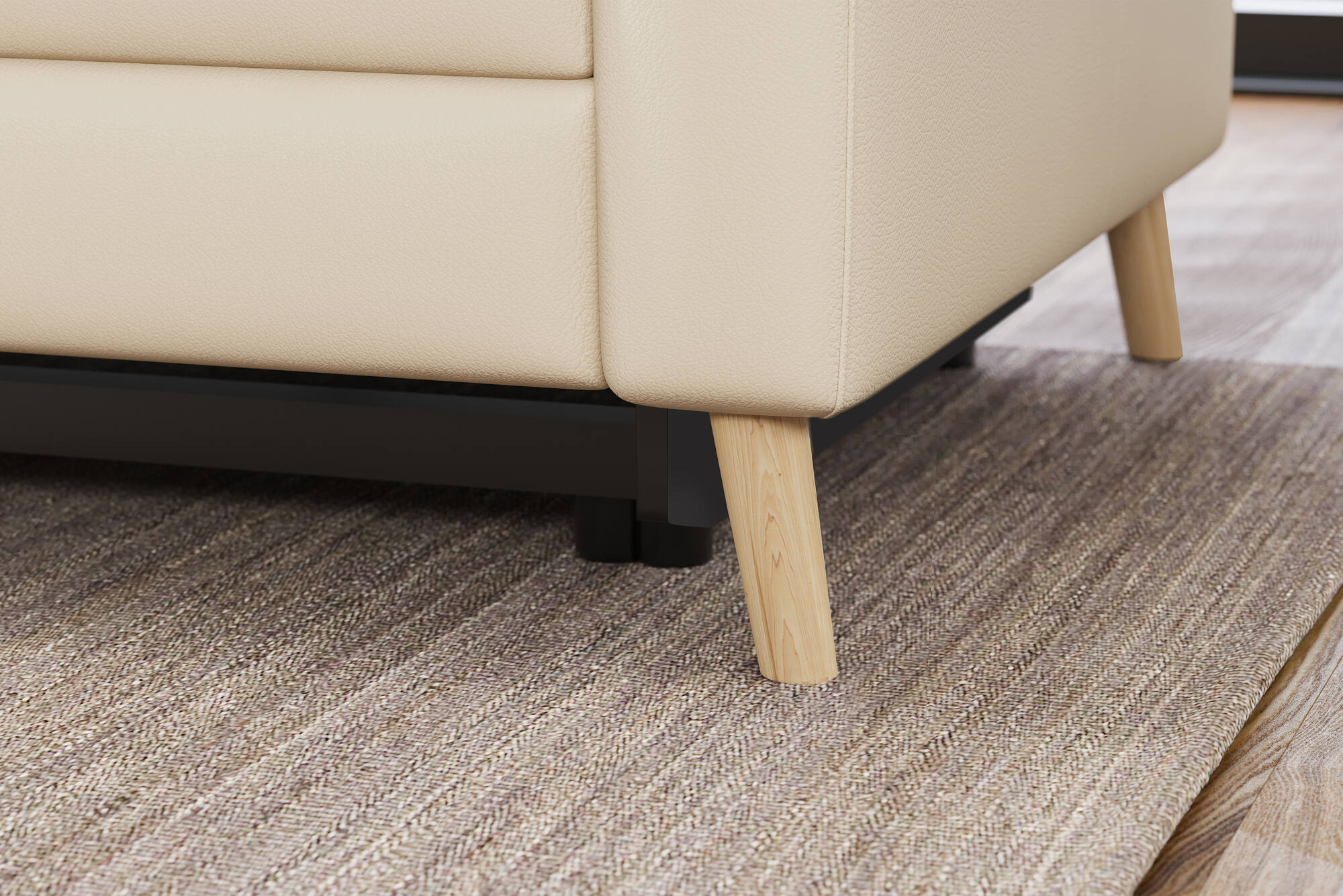 - High-density cushions with polyester filling and spring coil suspension for lasting comfort and support.