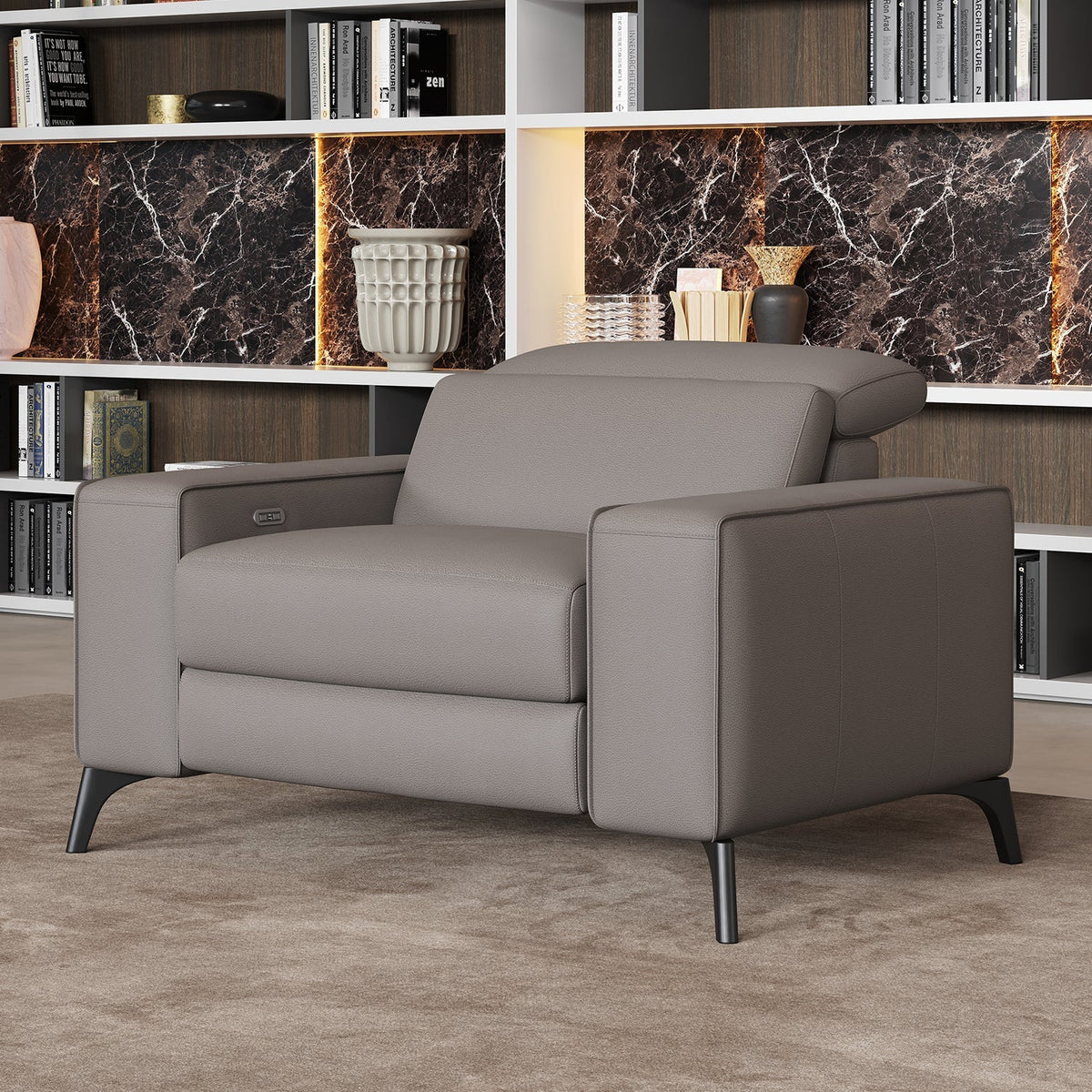 Introducing the epitome of sophistication and comfort: the Esther Leather Recliner Seat. This luxurious seat is a testament to modern design, merging sleek aesthetics with unparalleled functionality. Adorned with Italian Nappa 11000 Top Grain Leather Upholstery on seating surfaces, its pebble-textured finish instantly elevates any space.