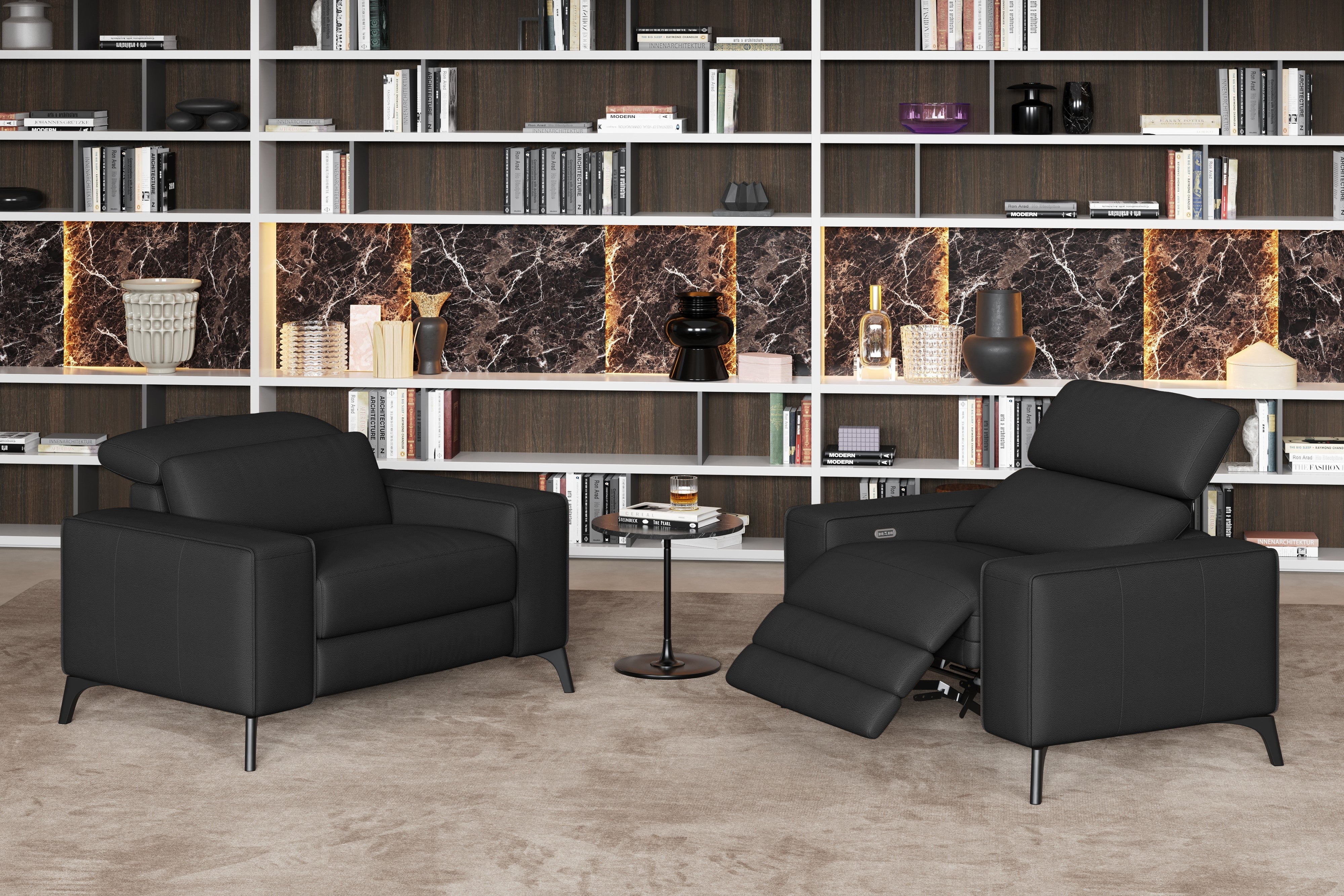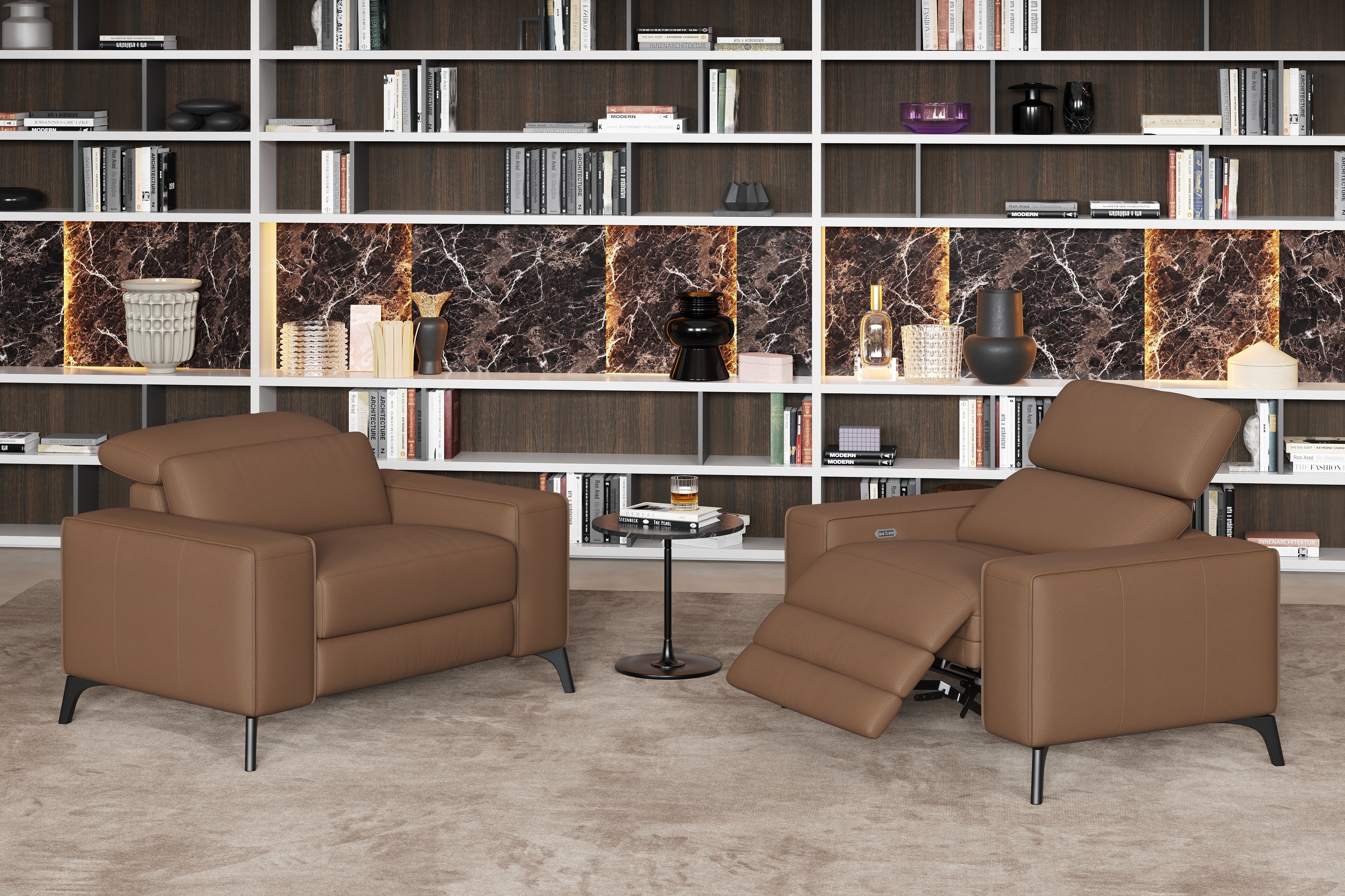 - Upholstered in Italian Nappa 11000 Top Grain Leather on all seating surfaces.