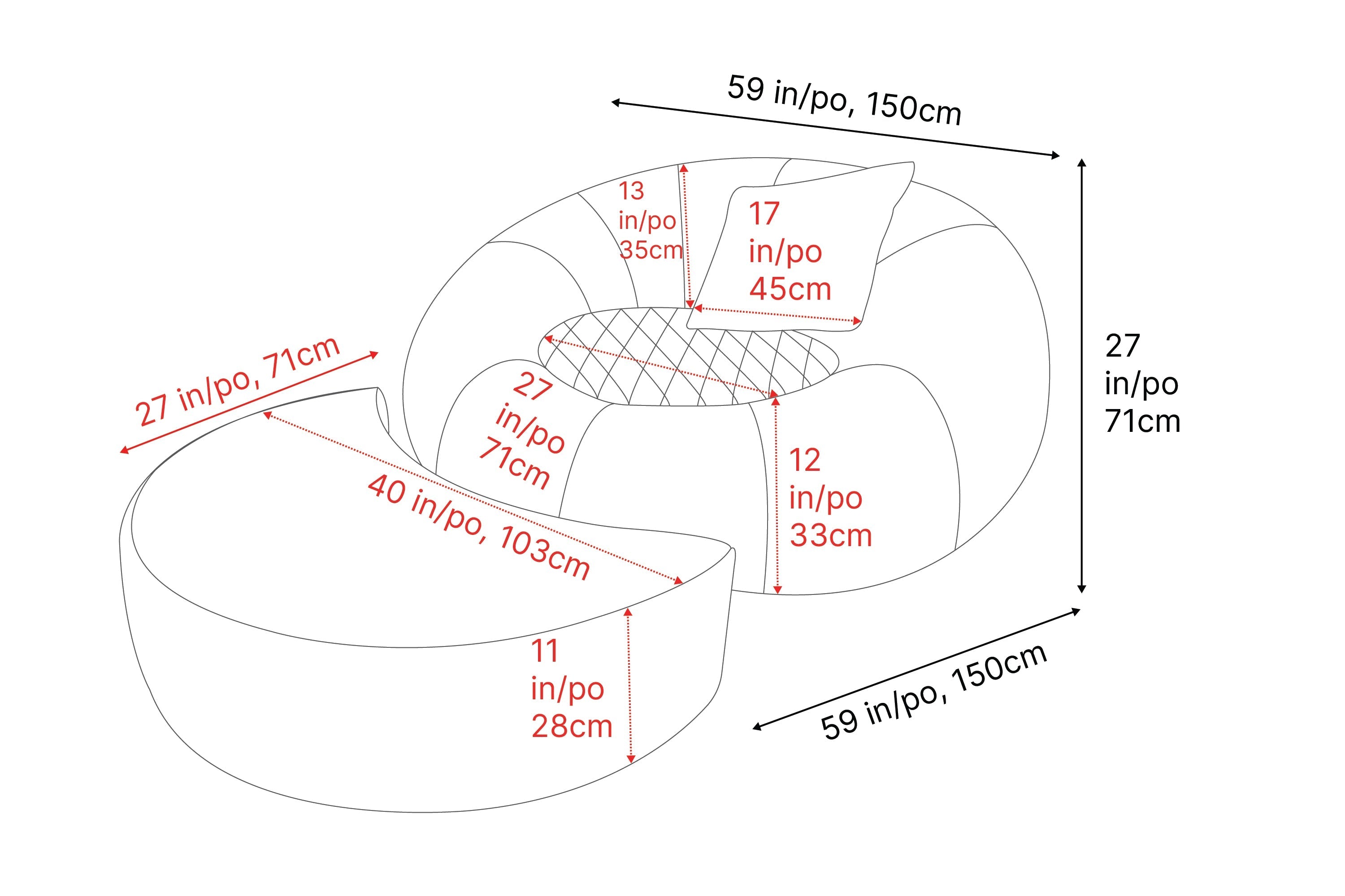 Dimensions (WxHxD)149.86 cm, 68.58 cm, 218.44 cm