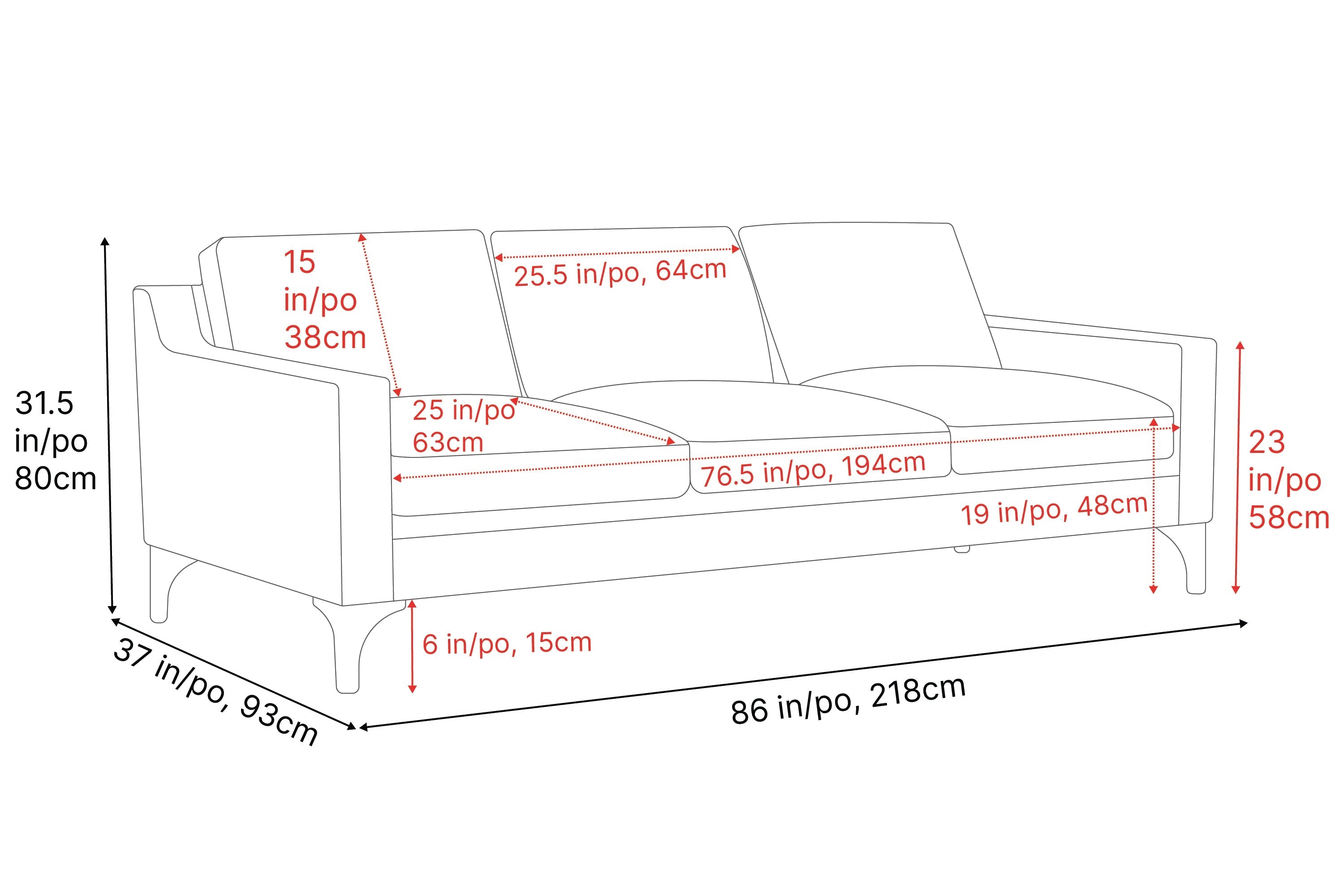 Width: 218.44 cm, Height: 80.01 cm, Depth: 93.98 cm