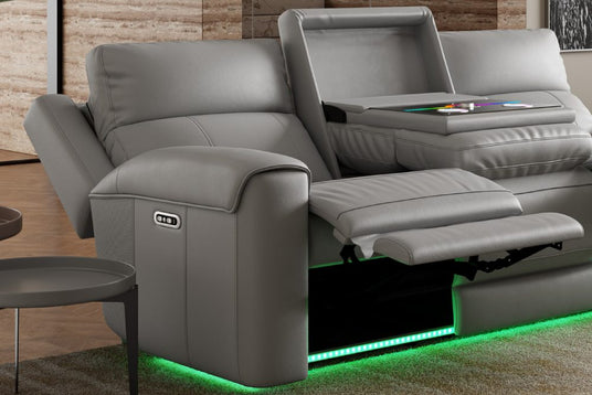 Turn your living room into a true luxury cinema with the Harbour Power Reclining Lounge. Designed for complete relaxation, it features smooth power recline, power headrests, seat heating, ventilation, and soothing air massage for a spa-like experience. The immersive built-in Bluetooth sound system with bass shaker and ambient RGB lighting sets the perfect mood, while integrated wireless chargers ensure your devices stay powered as you unwind in comfort and style.