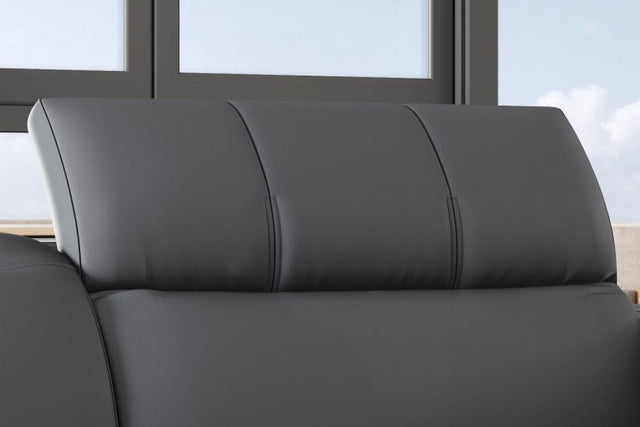 Built for luxury, this power reclining lounge lets you kick back in comfort and style. Crafted with precision, this lounge blends functionality and luxury for an elevated relaxation experience. Wrapped in Top-Grain Leather and supported by a solid Wood frame with steel legs, it exudes timeless allure and stability. Sink into ultimate comfort with Foam + Polyester cushion fillings. The left and right seats are ingeniously designed as Power Recliners with manual adjustable headrests for customizable relaxation. Transform your living room into a haven of comfort and style with Isla. Whether it's unwinding after a long day or enjoying a movie night, this lounge's power recliners ensure you find your perfect comfort zone.