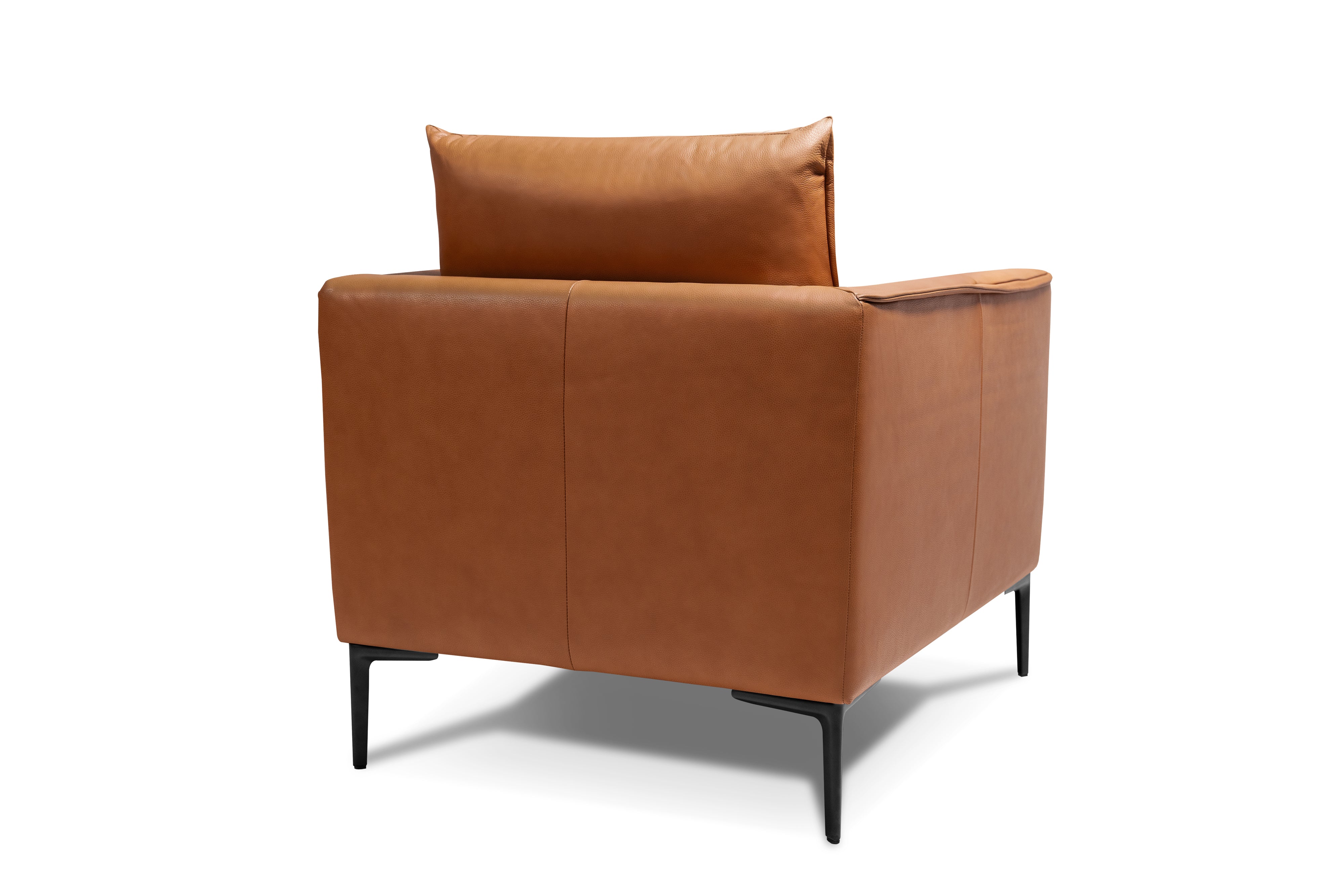 A true embodiment of timeless elegance and individual style, the Jasper Single Leather Chair in rich cognac. Prepare to be captivated by the allure of this exquisite piece, where the captivating beauty of genuine leather meets unparalleled comfort and sophistication. The Jasper Single Leather Chair is a statement of refined taste and sophistication. Crafted with meticulous attention to detail, it showcases the natural beauty of genuine leather in a stunning cognac hue. As your eyes trace the smooth contours and embrace the warm tones of the leather, you'll be captivated by its understated luxury. The rich cognac color of the Jasper Single Leather Chair adds a touch of sophistication and warmth to any room. It effortlessly complements a range of interior styles, from classic to contemporary, making it a versatile addition to your living space.