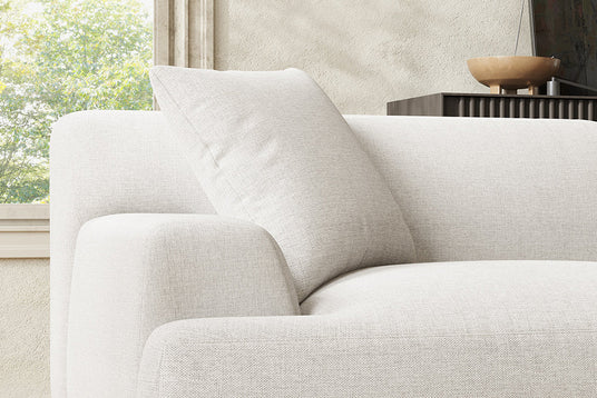Introducing the Kotor Sectional Lounge - where style, comfort, and spaciousness unite to redefine your lounging experience. Embrace the allure of the Kotor lounge, a true embodiment of relaxation and elegance. The Kotor lounge is more than furniture; it's an invitation to luxurious comfort. Upholstered in a soothing white fabric, it emanates tranquility and warmth. The extra-large chaise design provides ample room for you and your loved ones to unwind together. Designed with your utmost comfort in mind, the wide yet shorter armrests offer a unique touch of modernity. The Kiln Dried Wood frame guarantees sturdiness and durability, ensuring the Kotor lounge stands the test of time. Sink into the Premium Fiber Fill back cushions, tailored for indulgent softness. The high-efficiency foam seat cushions provide the perfect balance of support and comfort. Kotor doesn't just offer seating; it offers a cocoon of relaxation you'll never want to leave. Enhance your lounging space with the Kotor Extra Large Fabric Lounge, a harmonious blend of style and comfort. Elevate your home with this haven of relaxation and transform ordinary moments into cherished memories.