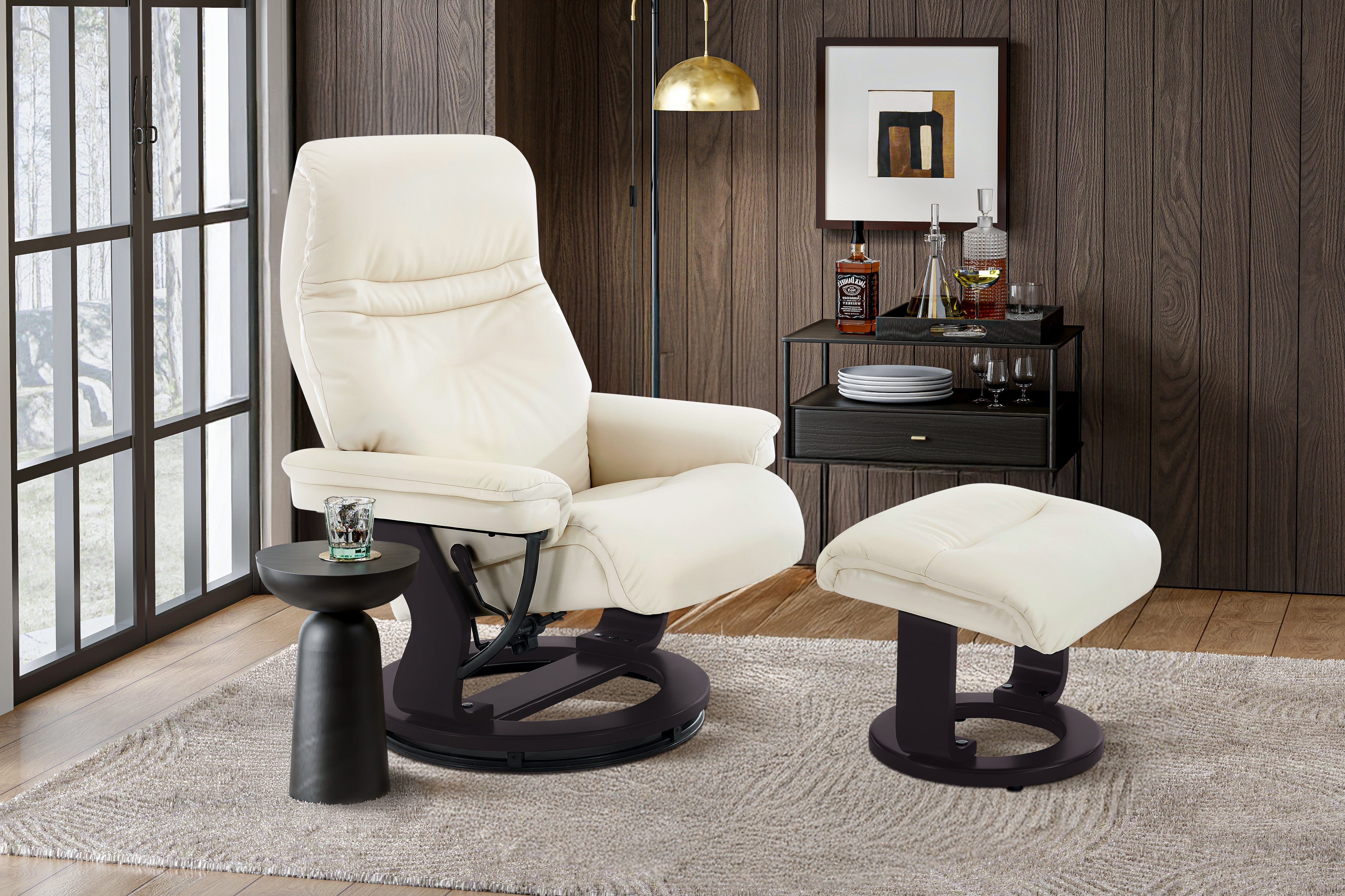 Relax in style with the Massimo reclining chair and its matching ottoman. Crafted with Italian Nappa 11000 Top Grain Leather in all the seating surfaces, this set exudes luxury. In a chic beige hue, it adds modern flair to any space. Supported by hardwood and metal, it offers both elegance and durability. Sink into the high-density foam cushions after a long day, knowing the no-sag suspension ensures lasting comfort. With the Massimo, enjoy both style and relaxation in your home.