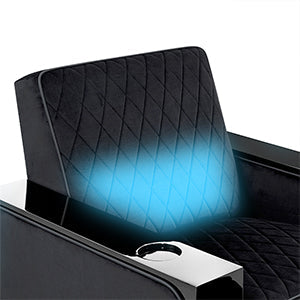- USB Charging Port and Control Panel located on the side of the armrest.