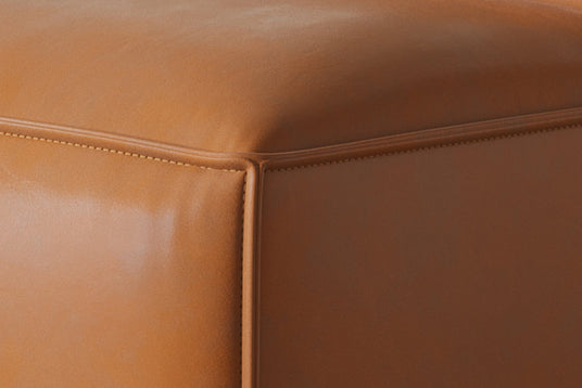 Introducing Nathan Leather Corner Lounge Module - the perfect addition to any décor. With its classic design, luxurious full aniline leather upholstery, and comfortable semi-firm seats, you can snuggle up and enjoy the plush feather padding while lounging peacefully. Customize your configuration by adding individual pieces from the same collection.
