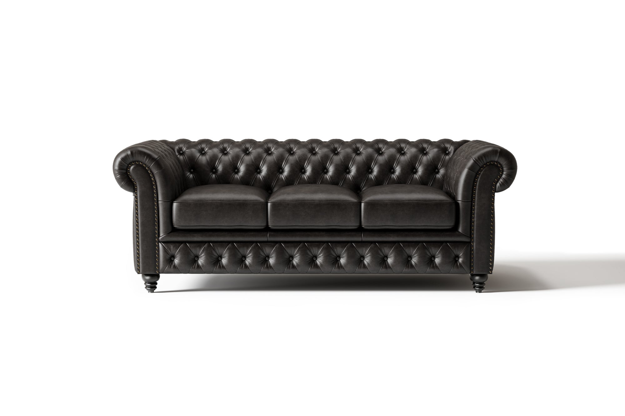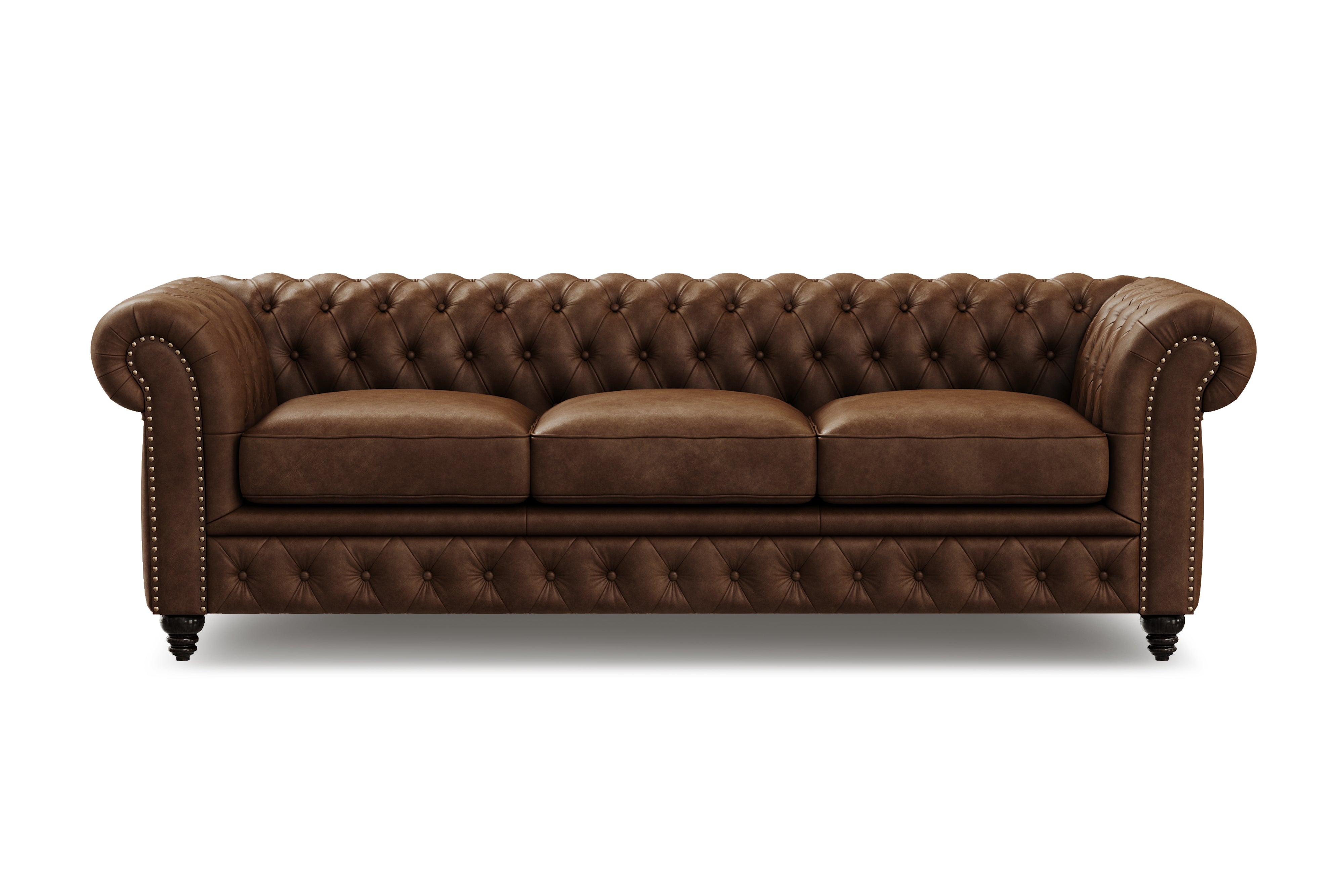 The exquisite Parma Full Aniline Leather Lounge is a true masterpiece of refined elegance. This stunning piece boasts button-tufted back cushions, beautifully accentuated by padded and tufted high-rolled arms and solid wood bun feet. The stately Bronze nail-head trim, intricately hand-applied, adds a final touch of sophistication as it outlines the arms and front rails. Immerse yourself in luxury with our grand three large-seater lounge, offering an expansive width to accommodate your every lounging desire. This Lounge exemplifies the perfect blend of exquisite craftsmanship, lasting comfort, and timeless elegance, making it an exceptional addition to your living space.