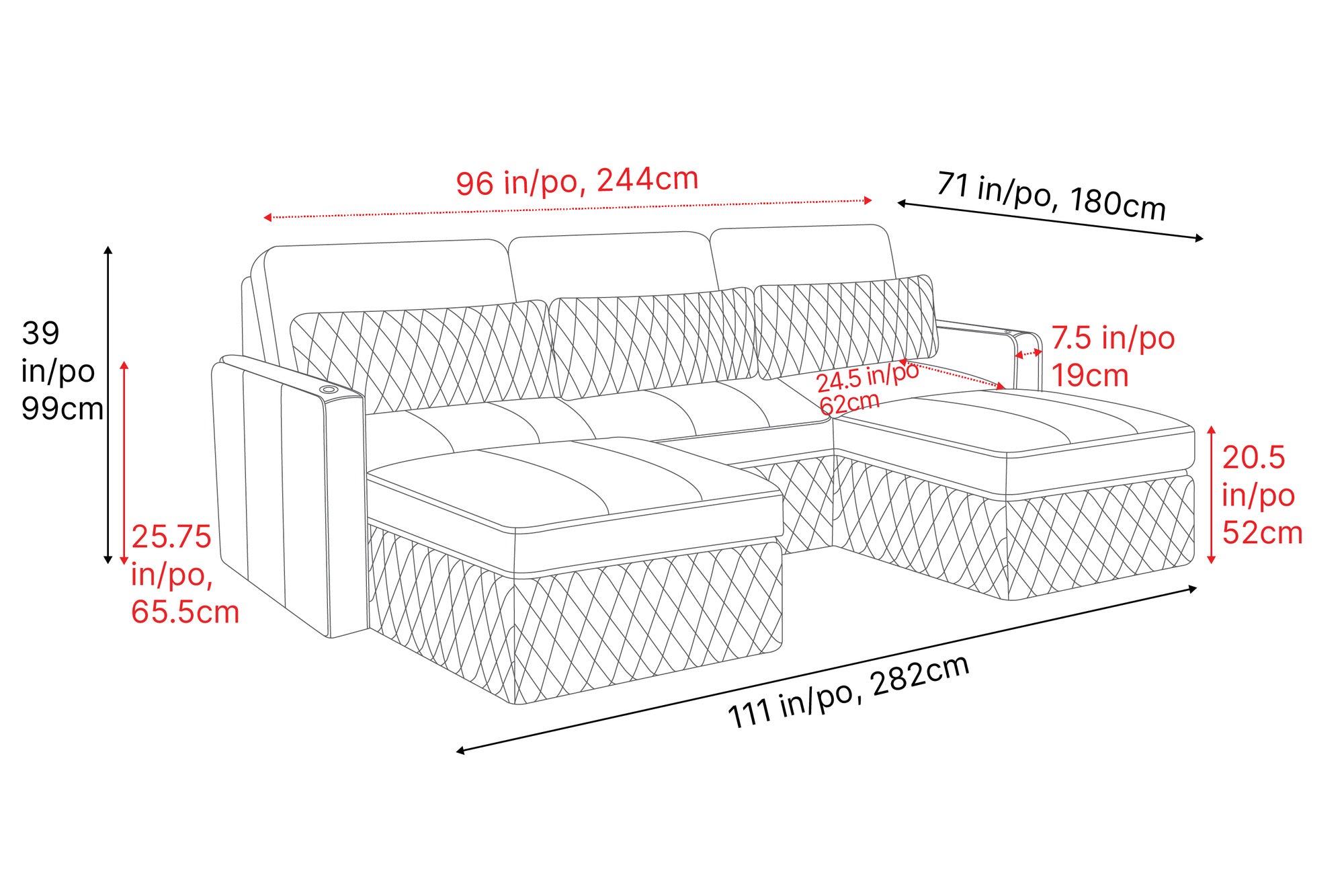 Width: 281.94 cm, Height: 99.06 cm, Depth: 99.06 cm