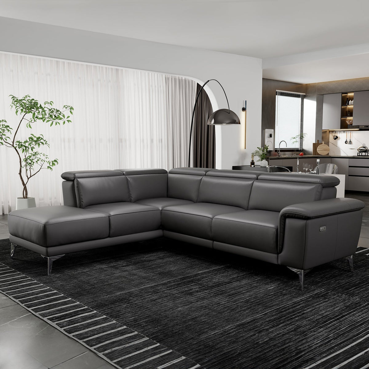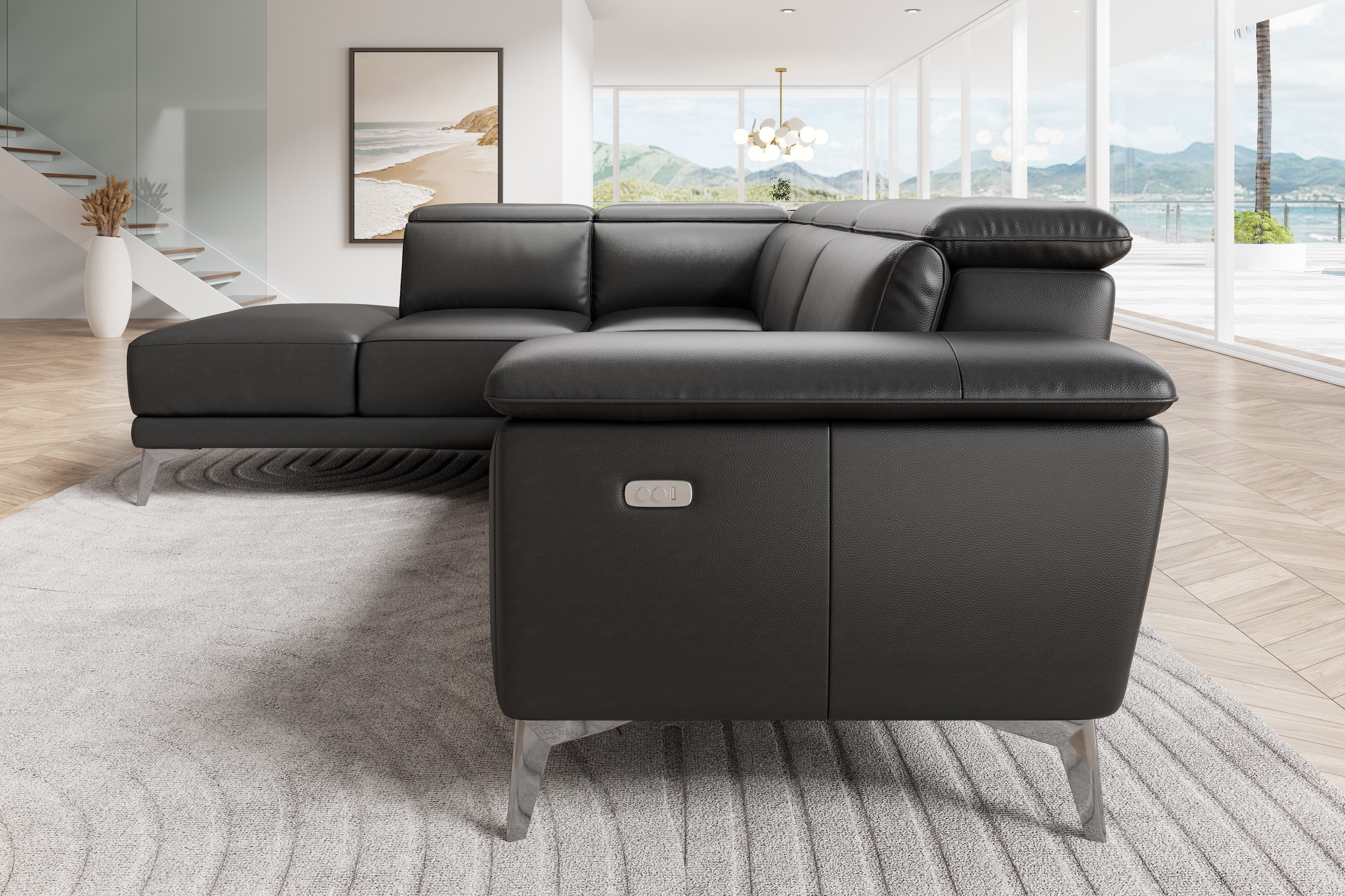 The Pista sectional embodies the ideal fusion of comfort and luxury, featuring a stunning top-grain leather construction that captures the essence of home. Its exquisite craftsmanship defines the true meaning of coziness and elegance. Equipped with adjustable headrests and an electric recliner function, and a convenient USB charging feature, the Pista effortlessly introduces a contemporary flair to your home décor, enhancing its overall style and functionality.