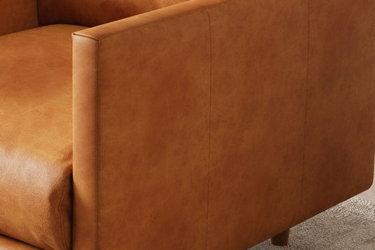 Introducing the Toulon Leather Accent Chair: A Fusion of Timeless Style and Unrivaled Comfort. Constructed with a kiln-dried wooden frame for enduring sturdiness, the Toulon Chair is upholstered in authentic Italian Nappa 11000 Top Grain Leather, buffed for a soft touch and left untreated for a natural look. Its high-resiliency foam seat cushions deliver unmatched comfort, while the fiber-down back cushions provide optimal support. With straightforward assembly, it transforms your space into a chic sanctuary. Embrace the elegance and comfort of modern design paired with timeless luxury.
