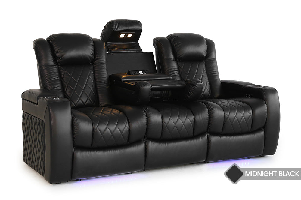Combining design and function, the Tuscany Console provides luxury through its supple leather, cozy cushions, supportive headrest and a center console that holds your favorite glass of wine and food platter. Both the left and right end seats are full power recliners with power lumbar and headrest adjustability. Customization is possible so tailor as you see fit and enjoy the ultimate home theater experience with the Tuscany Console.