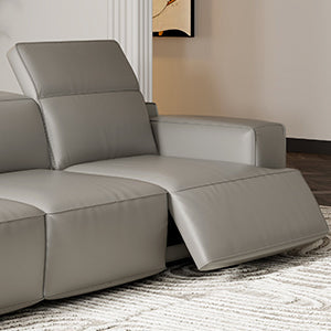 - Indulge in ultimate relaxation with our innovative dual-power reclining system. Both sides boast electric power headrests for personalized comfort, with an additional center headrest that conveniently flips for shared enjoyment.