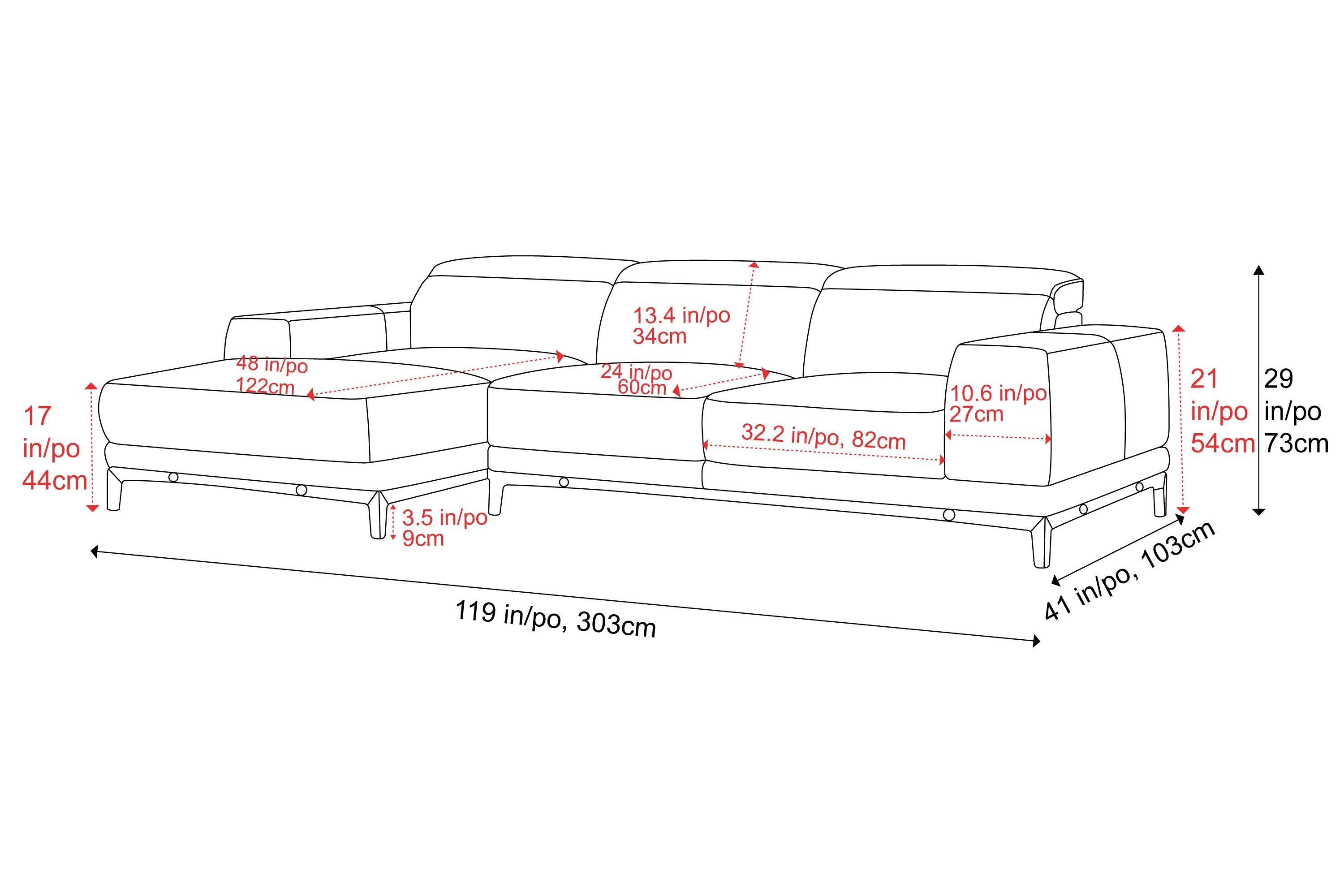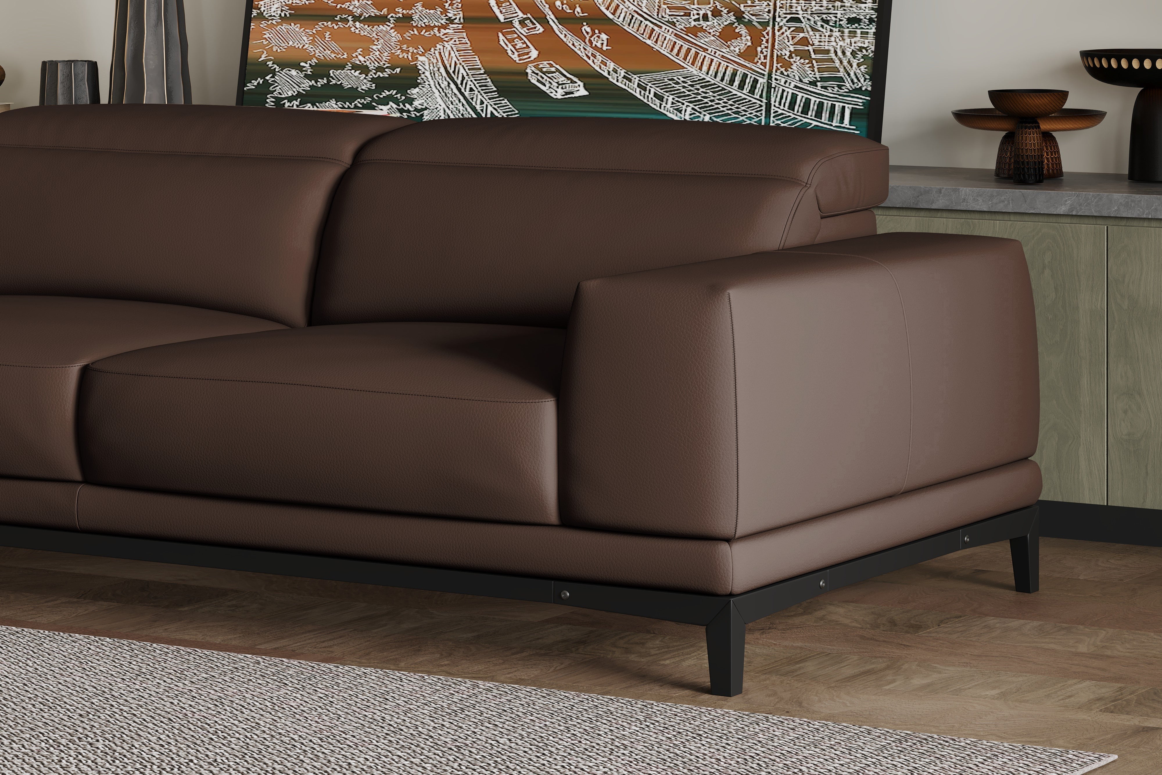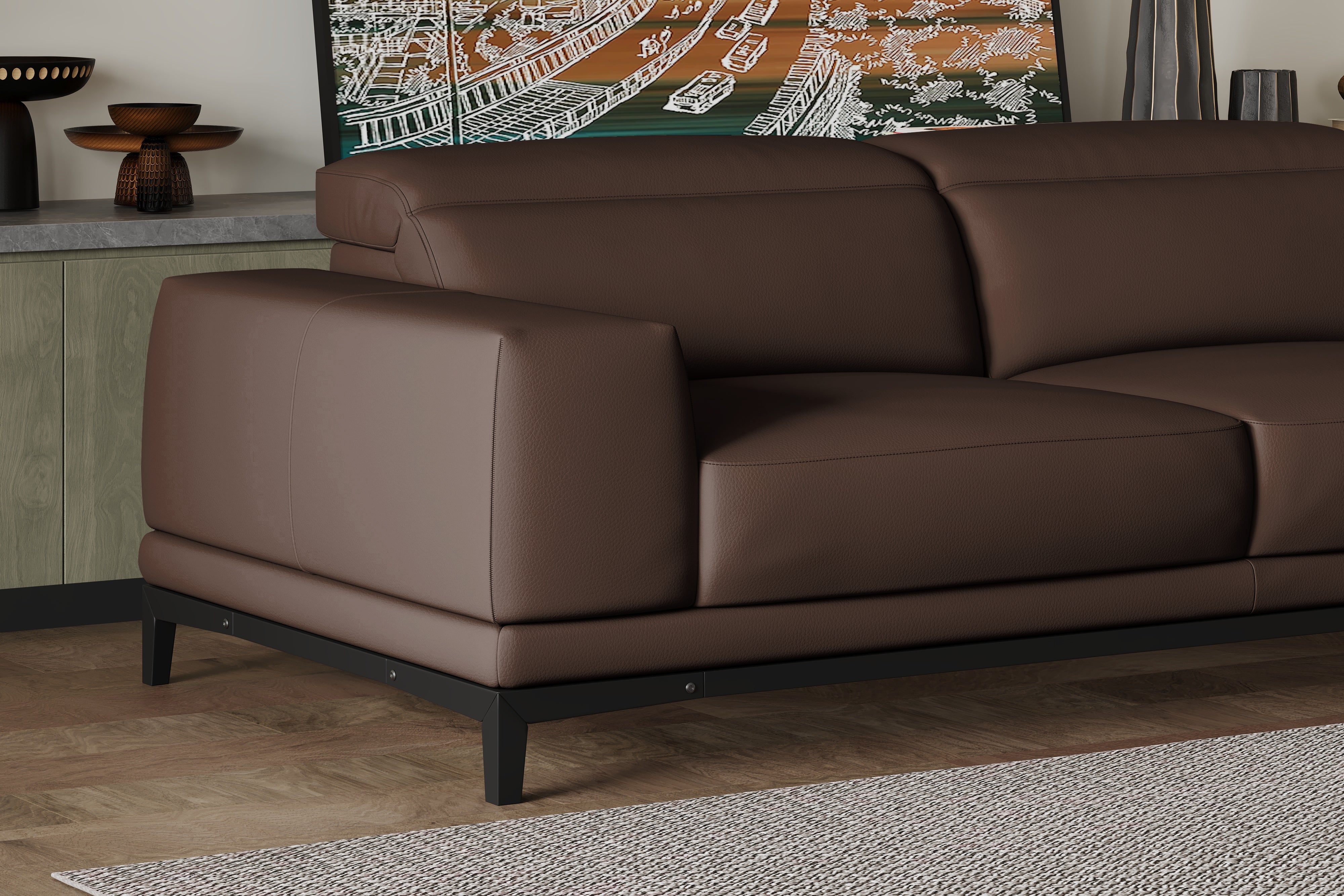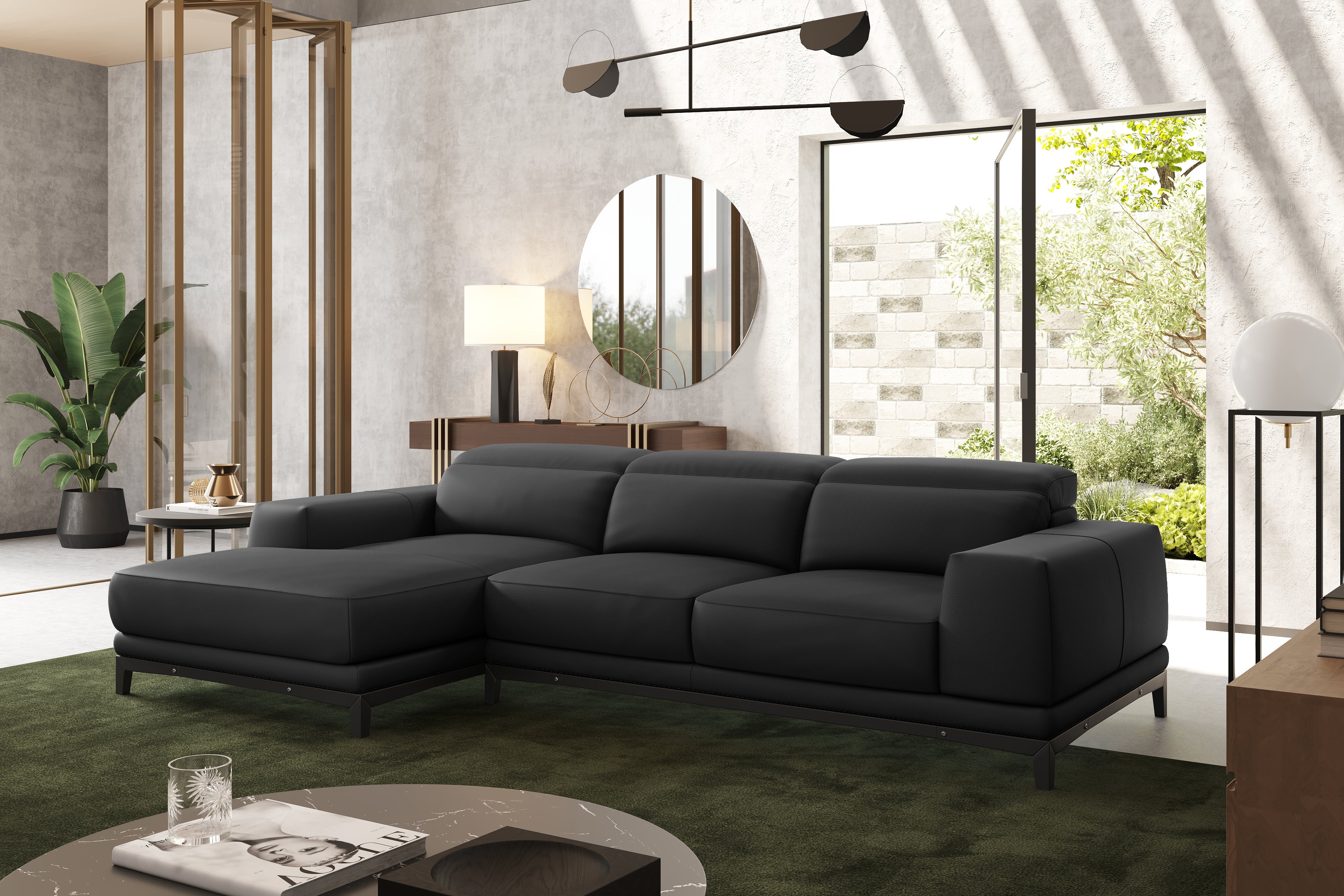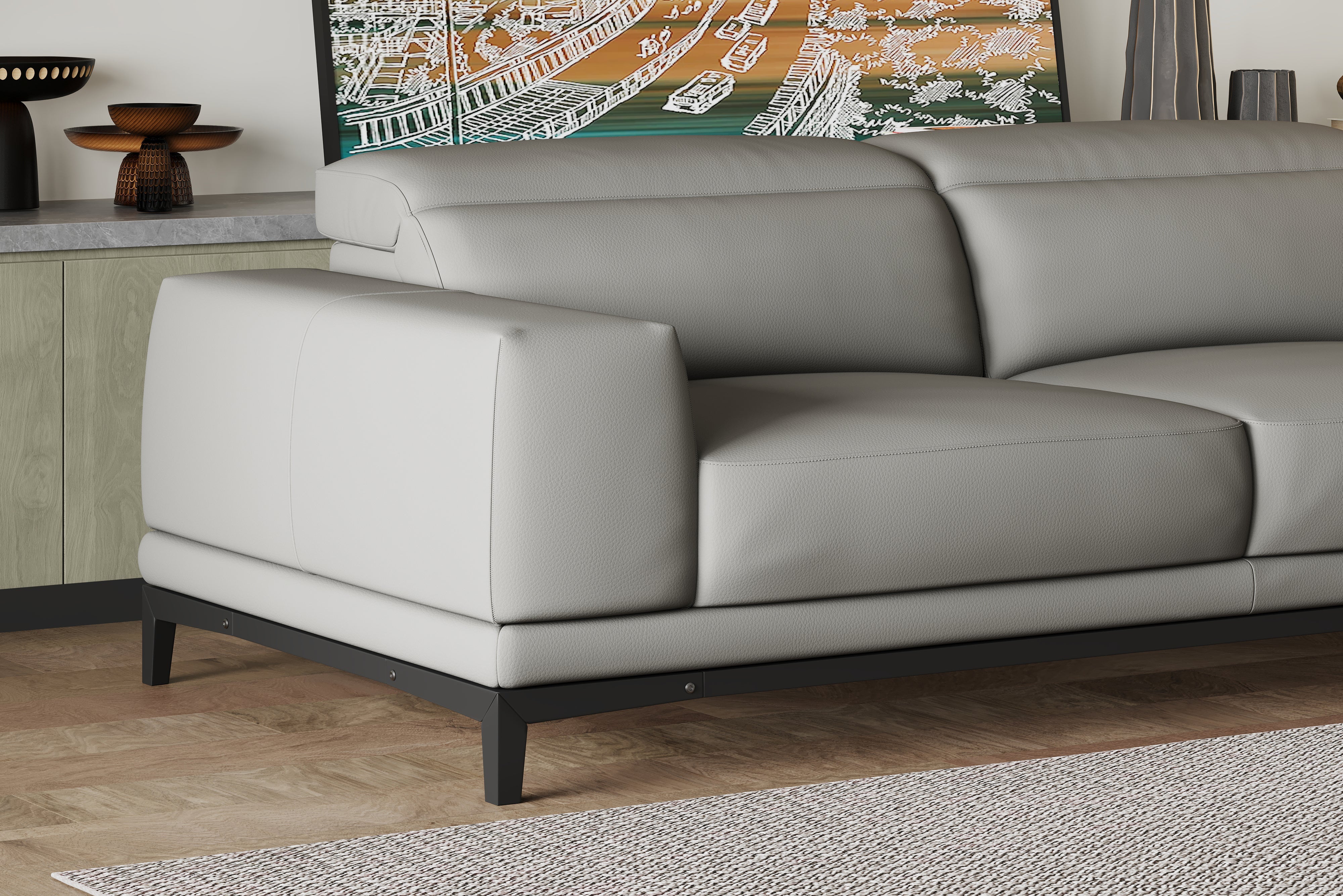 Refined stitching accentuates the sleek design, while the metal base adorned with metal studs adds a touch of sophistication. The manually adjustable headrests cater to personalized relaxation, allowing you to unwind in style. Elevate your living space with the Valletta Three Seats with Left Chaise Lounge—a harmonious blend of superior craftsmanship, opulent materials, and ergonomic design, delivering both aesthetic appeal and unmatched comfort.