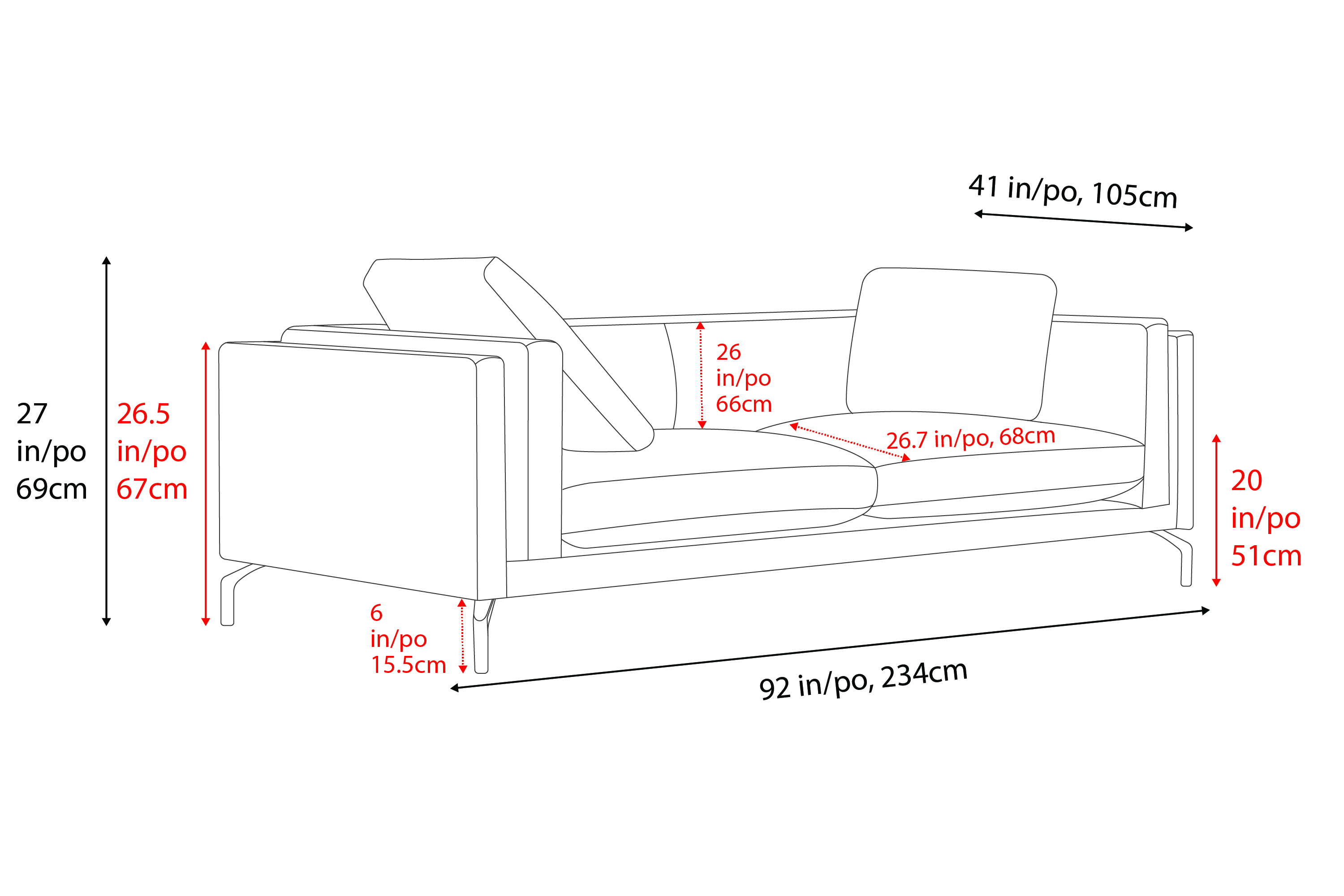 Width: 233.68 cm, Height: 67.31 cm, Depth: 104.14 cm